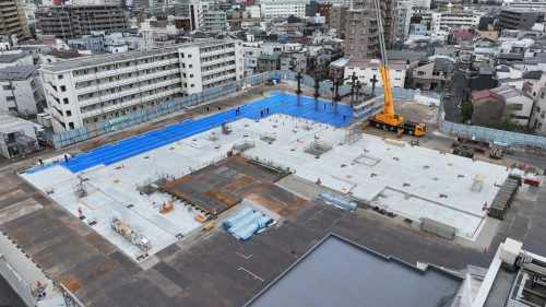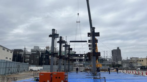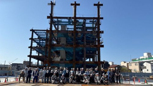 2026.04.21 新築工事 社会福祉法人賛育会新病院・新施設新築工事 ③鉄骨建方工事開始 現在、三浦工務店では墨田区立花にて社会福祉法人賛育会 新病院・新施設新築工事の施工を行っております。 前回の記事にて紹介致しました、杭工事、土工事(掘削工事)、地下躯体工事が完了し、現在は建築物の骨組をつくる鉄骨工事の施工を行っております。 今回は130tオールテレーンクレーンで1節目を組み立てる鉄骨建方初日の様子をお届け致します。 鉄骨工事 鉄骨梁組立 安全大会終了後、協力会社との集合写真 2026年6月上旬まで鉄骨工事を予定しております。 工事概要 建築主:社会福祉法人賛育会 設計監理:株式会社INA新建築研究所 建設地:東京都墨田区 用途:病院、特別養護老人ホーム、デイサービス 構造:鉄骨造 階数:5階建 延べ面積:13868.18㎡ タグ:#社会福祉法人賛育会 新病院・新施設新築工事
